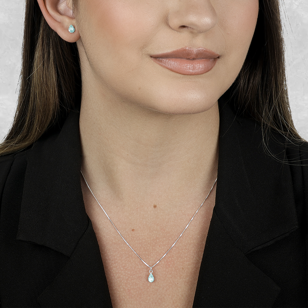 Brinco: 0,6 cm x 0,5 cmColar: 0,6 cm x 0,5 cm – 45 cmPedra: ZircôniaMaterial: Prata 925